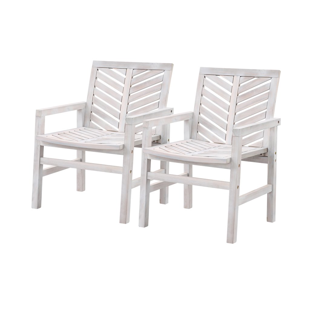 Walker Edison OWC2VINWW Vincent Wood Chevron Patio Chair, White Wash - Set of 2