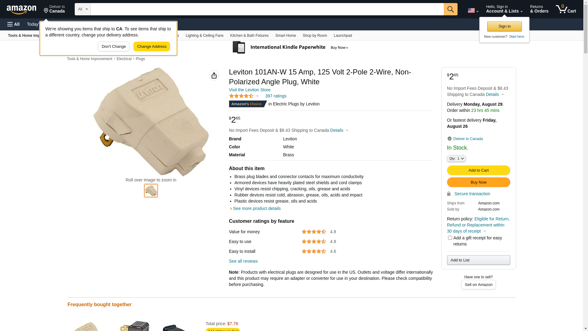 * Residential grade* Straight blade * Grounding* Angle plug* 1-15P NEMA * Brass blades and contacts* Zinc plated steel assembly screws* Super tough nylon body material* UL and CSA Standards and Certifications* 2 year limited warranty* Black* .250" maximum cord range* 20-16 AWG* 2 pole* 2 wire* 15 amp* 125 volt * White* Bulk