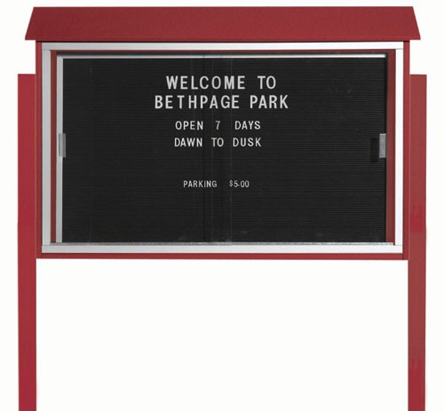 Aarco PLDS3045L-7 Sliding Door Message Centers, Rosewood Outdoor Plastic Lumber with Letter Board, Clear Sliding Door. Wall Mount. 45”(W) x 30”(H)<br><br>Key Features:<br>- Plastic construction stands up to the elements<br>- Sliding door for easy access<br>- Includes one set of 0.75" Helvetica letters and an assortment tray for optimal organization<br>- Made of recycled material<br><br>Specifications:<br>- Board material: Vinyl<br>- Board type: Letter board<br>- Door style: Sliding<br>- Frame color: Rosewood<br>- Frame material: Plastic<br>- Light: Without light<br>- Shape: Rectangle<br>- Type: Message centers<br>- Usage: Outdoor<br>- Dimensions: 45”(W) x 30”(H)<br>- Weight: 85 lbs<br><br>