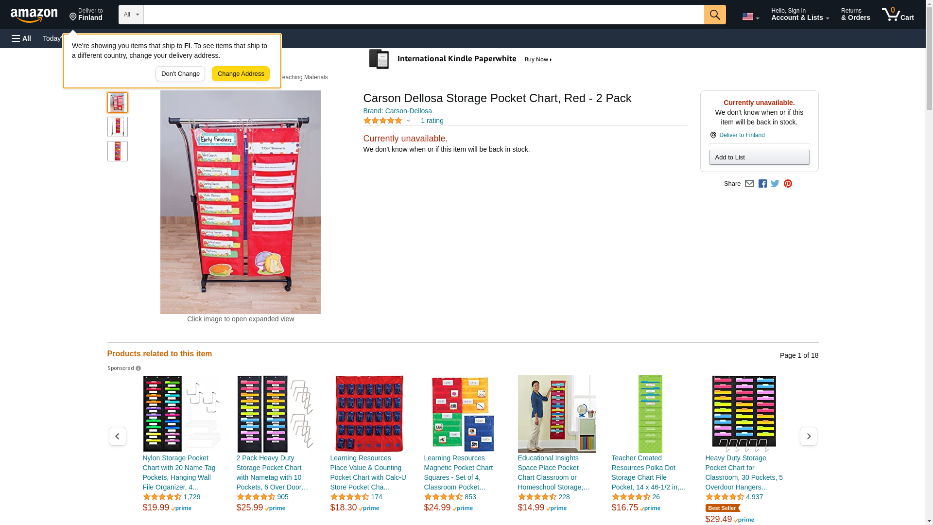 Carson Dellosa Storage Pocket Chart, Red - 2 Pack