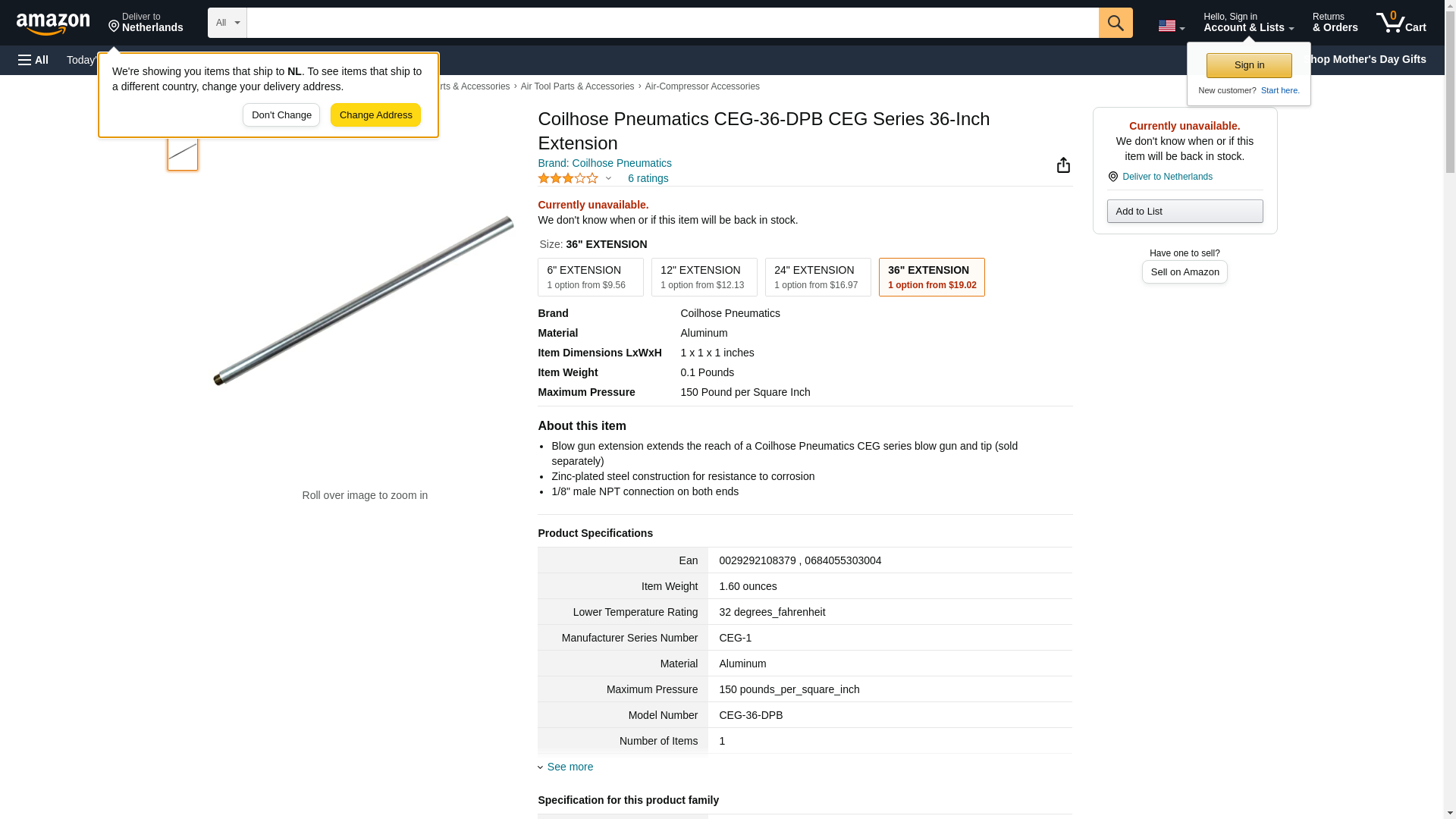 | Feature | Blow gun extension extends the reach of a Coilhose Pneumatics CEG series blow gun and tip (sold separately) |