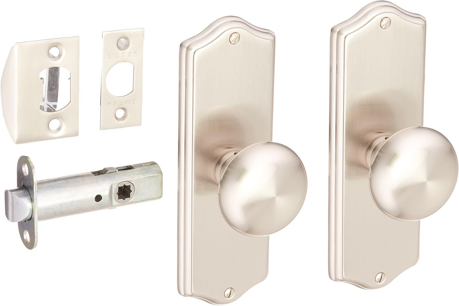 Plain-spoken and unpretentious, with subtle nuances of style, this traditional door set embodies the New England spirit. Originally designed in the colonial revival style around 1900, its charm still resonates. Our top-notch reproduction has been updated with modern tubular latch and heavy-duty spring assisted mechanics, making installation quick and easy. Finely crafted from solid forged brass, this handsome door set will infuse period charm into any new construction or renovation. <br><br>Door Set dimensions: Brass knobs measure 2 1/4" in diameter. Back plates are 7 1/8" H x 2 1/2" W.<br><br>Latch dimensions: Latch case: 7/8" diameter. Latch face plate: 2 1/4" H x 1" W.<br>Standard door range: 1 1/4" to 2" thick.