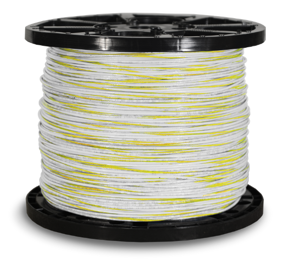 THHN 12 AWG Stranded White w / Yellow Stripe Copper Building Wire 2500 FT Reel Order by the foot - 2500 FT Minimum | Steiner Electric Company