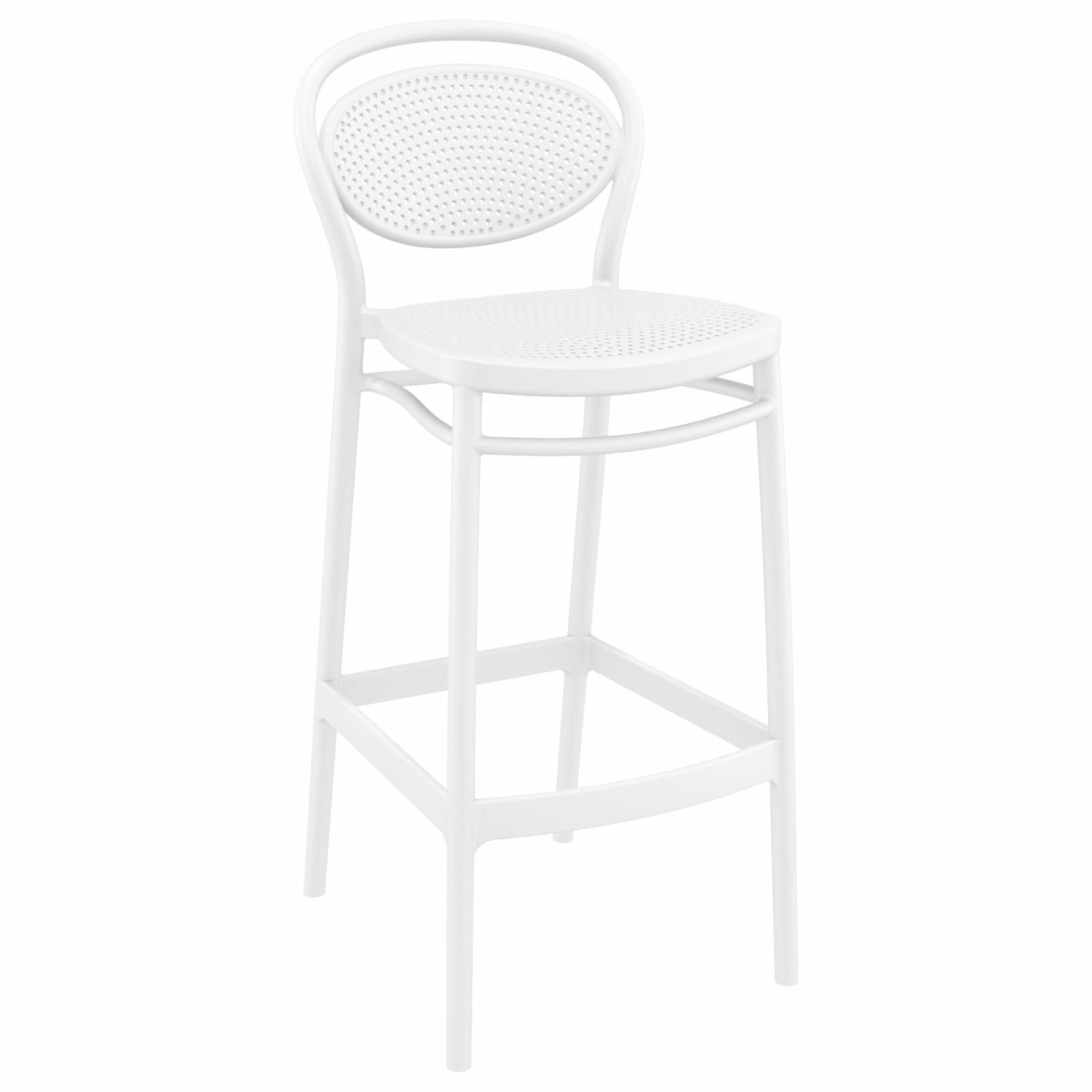 The Marcel Indoor Outdoor Bar Height Chair features a classic design. Made from commercial grade polypropylene resin with gas injection molded legs. Suitable for indoors and outdoors. Perfect for heavy use areas. Often used by restaurants, cafes and hotels. Resistant to UV, salt, weather, sun tanning oils.<br/><br/>Features :<br/><br/>- Made from commercial grade resin polypropylene.<br/>- Extremely durable for outdoor temperatures and conditions.<br/>- Beautiful U.V. Resistant, Soft Pastel Finish. Easy to keep clean.<br/>- Perfect for heavy use in any indoor or outdoor areas.<br/>- Great for balcony or pool side use.<br/>- The Marcel Bar Chair is not stackable..<br/><br/>Specifications :<br/><br/>- Seat Height : 29.5".