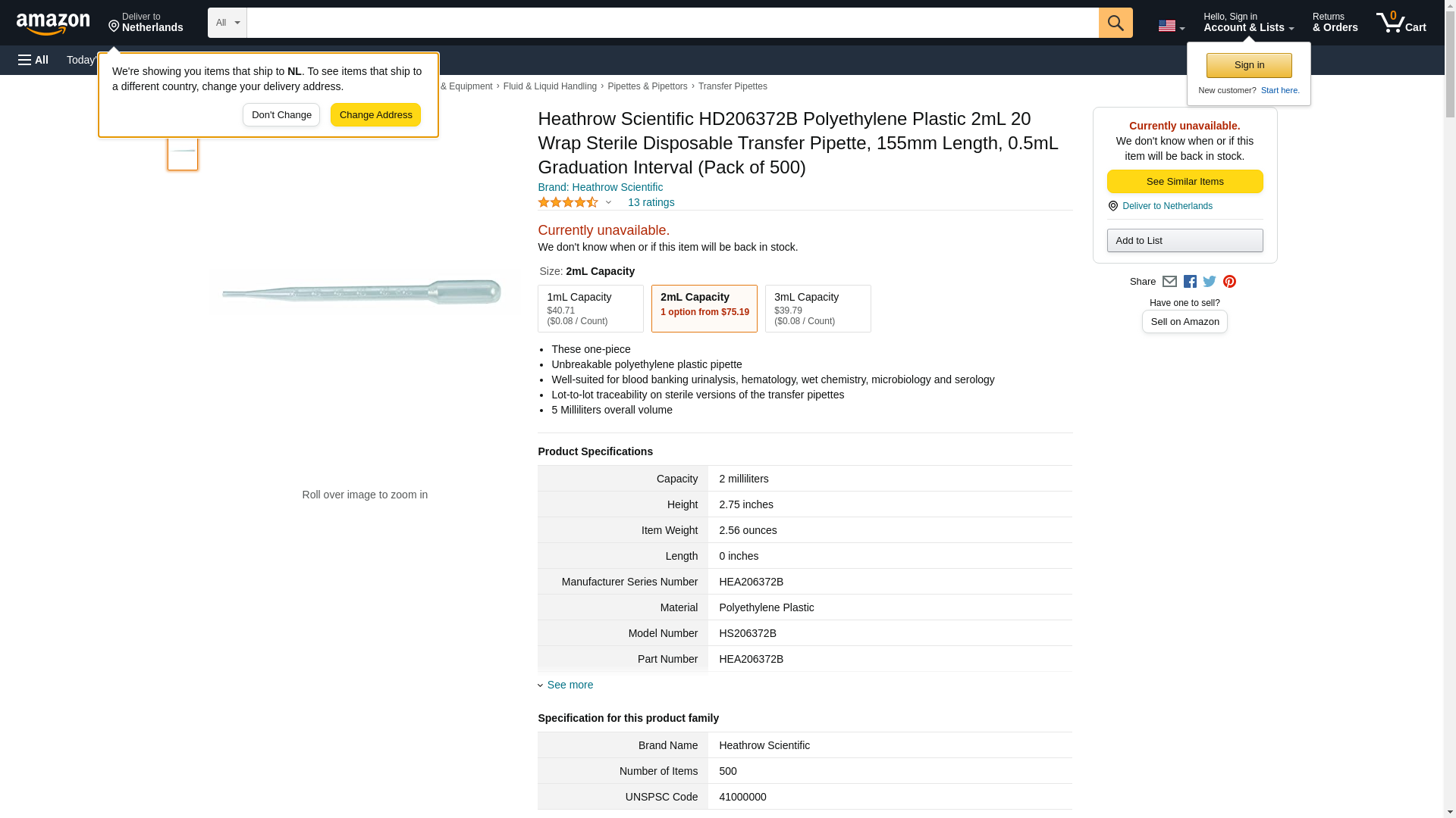 HS Transfer Pipette 2mL 20 wrap sterile pk500, 150mm Length. Sterile. 0.25 mL Graduations. Polyethylene