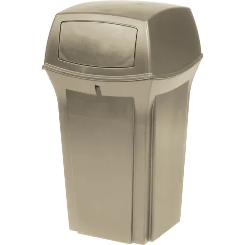 Rubbermaid Ranger Receptacle - Dome Top With Hinged Doors - 35-Gallon Capacity - Beige - Beige