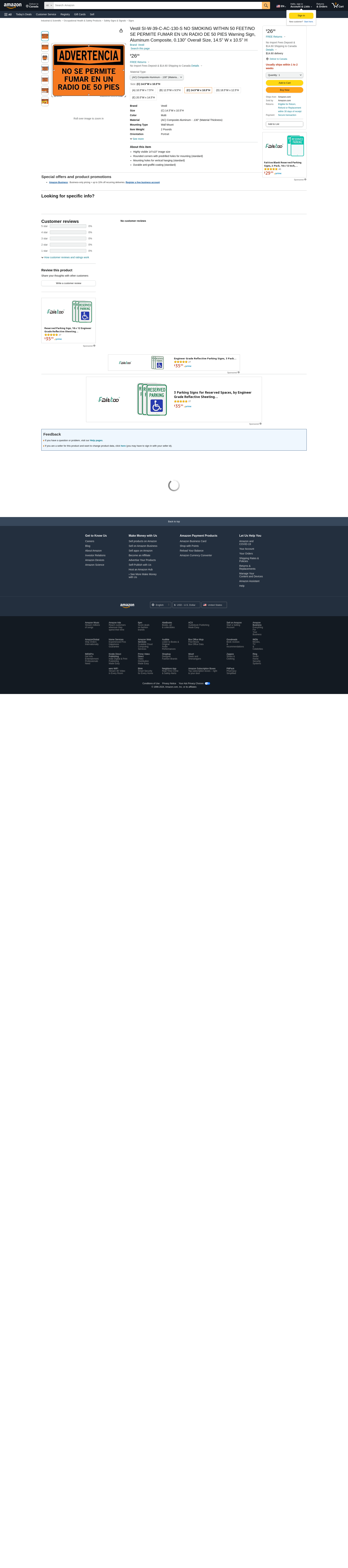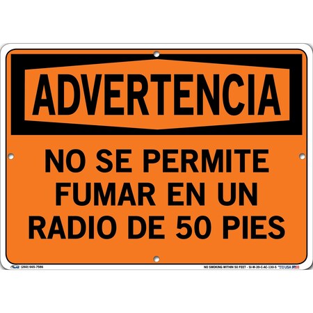Vestil SI-W-39-C-AC-130-S NO SMOKING WITHIN 50 FEET/NO SE PERMITE FUMAR EN UN RADIO DE 50 PIES Warning Sign, Aluminum Composite, 0.130" Overall Size, 14.5" W x 10.5" H