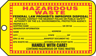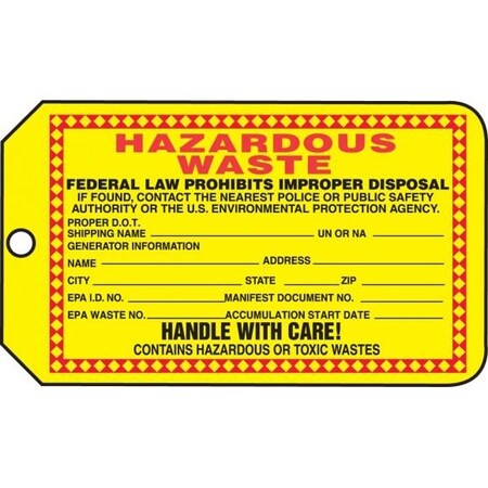 Order THS325PTP by Accuform Safety Tag "Hazardous Waste: Handle with Care" - US Mega Store
