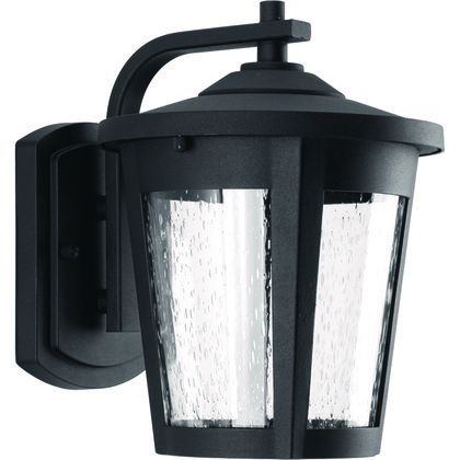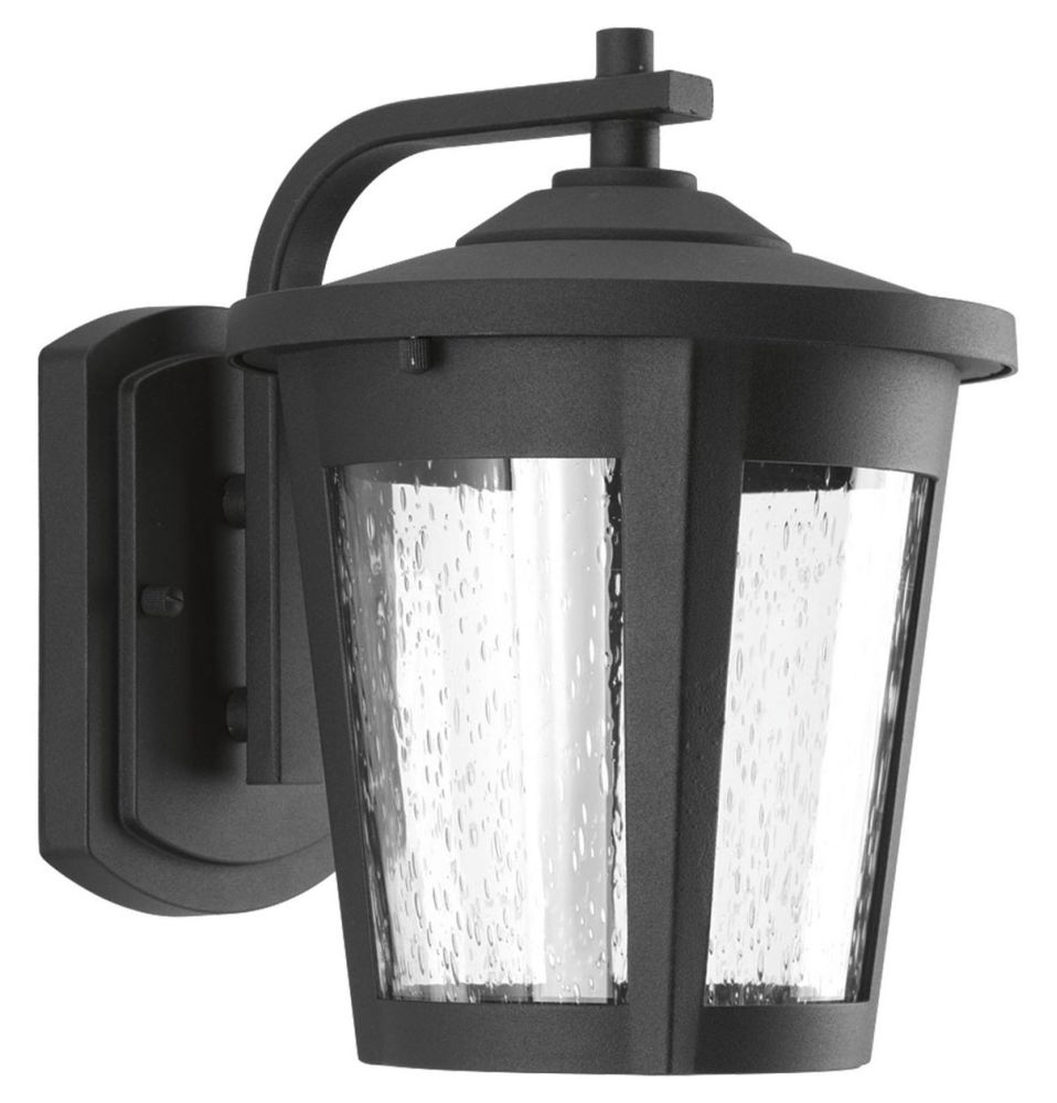 Progress Lighting East Haven LED Collection 1-Light Clear Seeded Glass Transitional Outdoor Medium Wall Lantern Light Textured Black