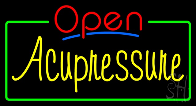 Sign Store N100-3363 Red Open Acupressure Green Border Neon Sign, 37 x 20 x 3 In.