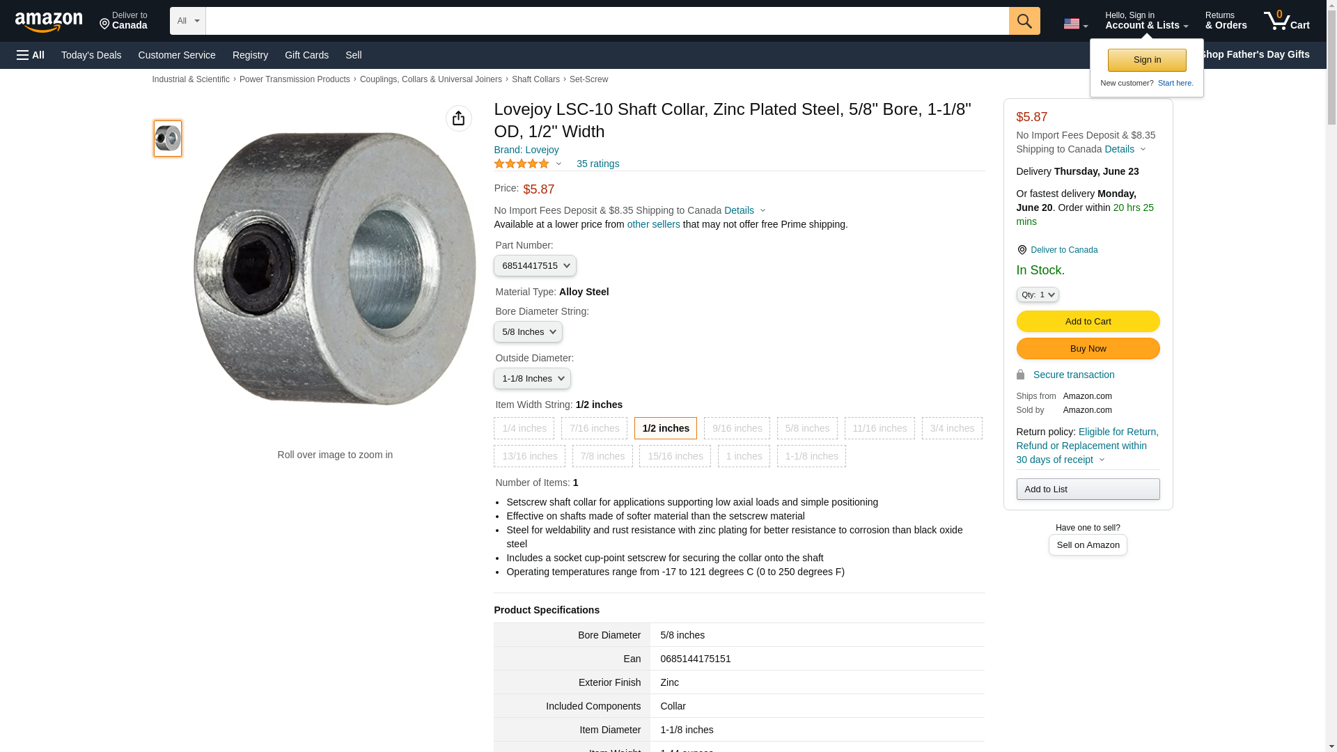 Lovejoy LSC-10 Shaft Collar, Zinc Plated Steel, 5/8" Bore, 1-1/8" OD, 1/2" Width