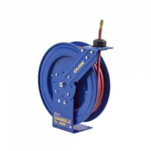 COXREELS P Series Performance spring driven hose reels have a long history of dependability and trouble free performance. Their compact space-saving size and heavy duty construction make them highly versatile and virtually indestructible. Time-tested proven components, superior design and craftsmanship. EZ-Coil® Rewind Safety System; no electricity required; cartridge-style spring motor; powder painted steel construction; " solid 1" steel center support shaft; full flow swivel joint; adjustable arm guide; 8-position locking ratchet. 4-roller hose guide; multiple mounting positions, Lot of 1