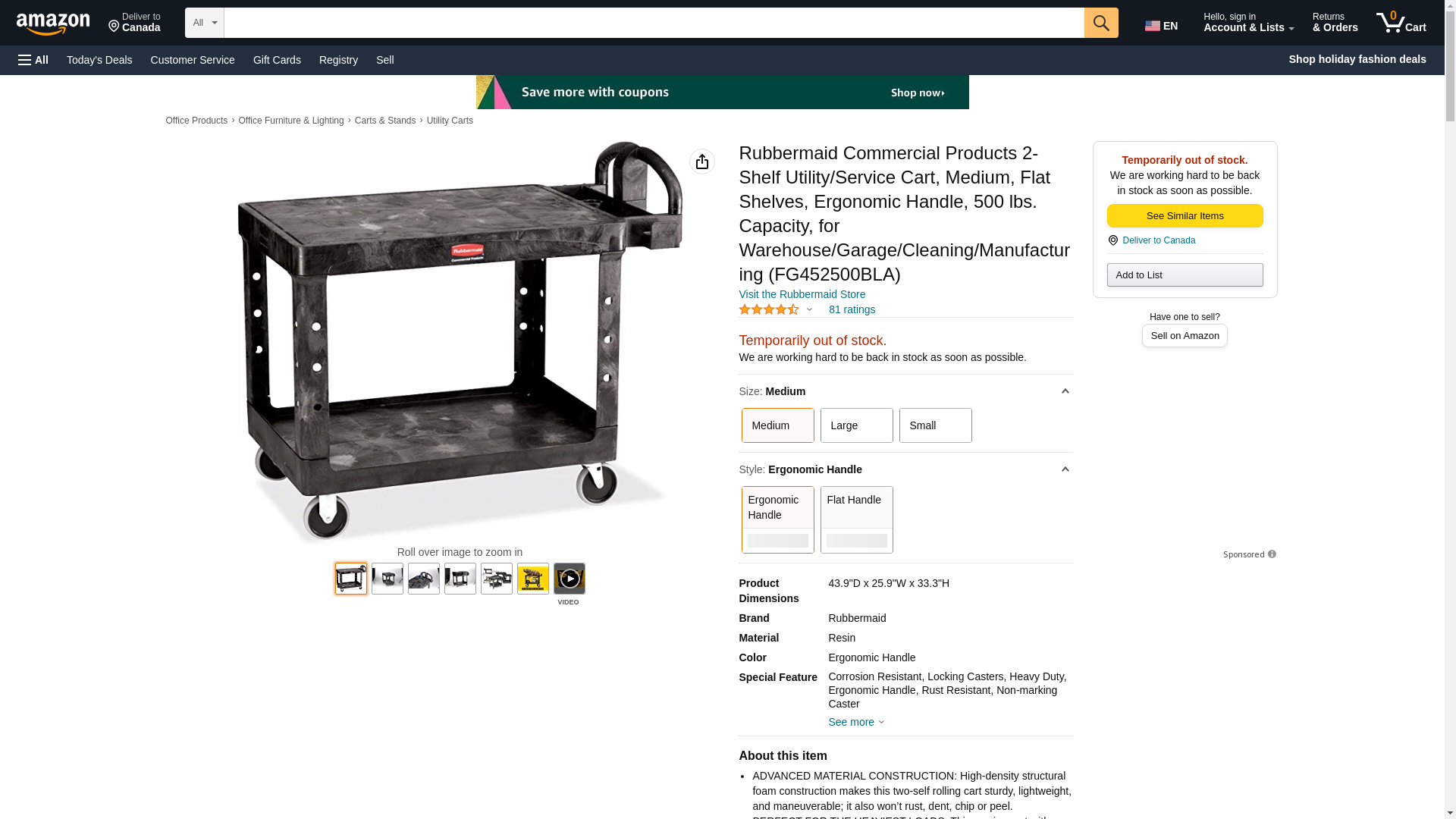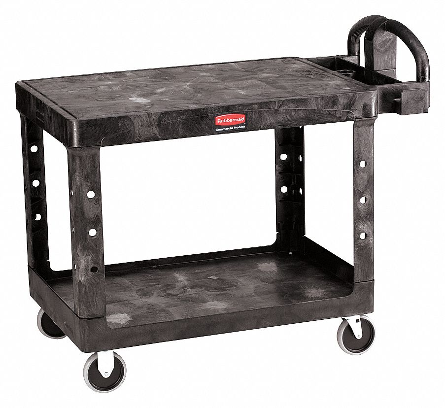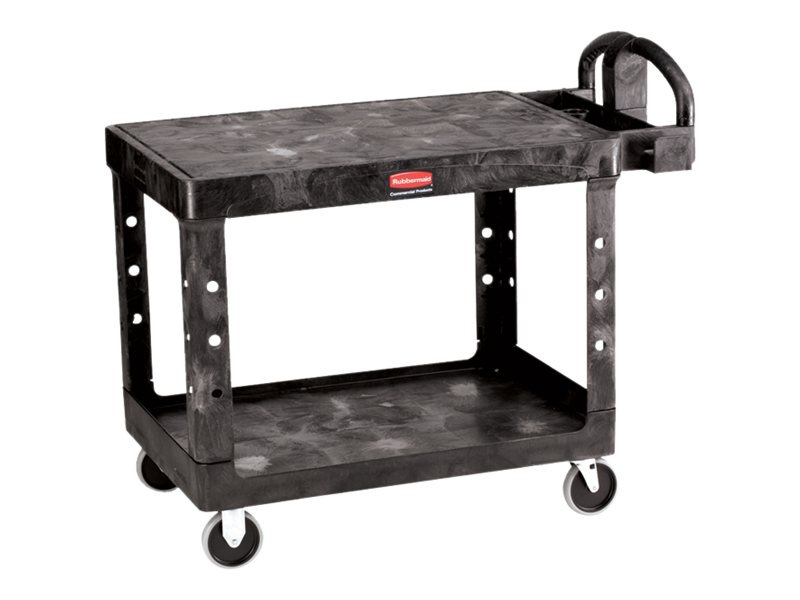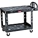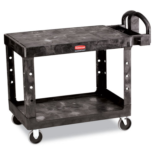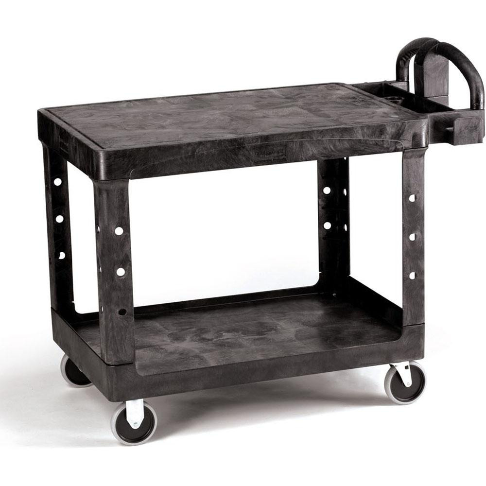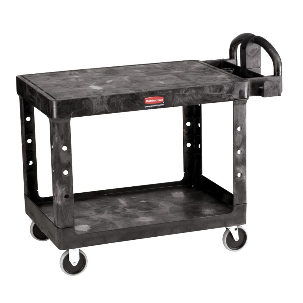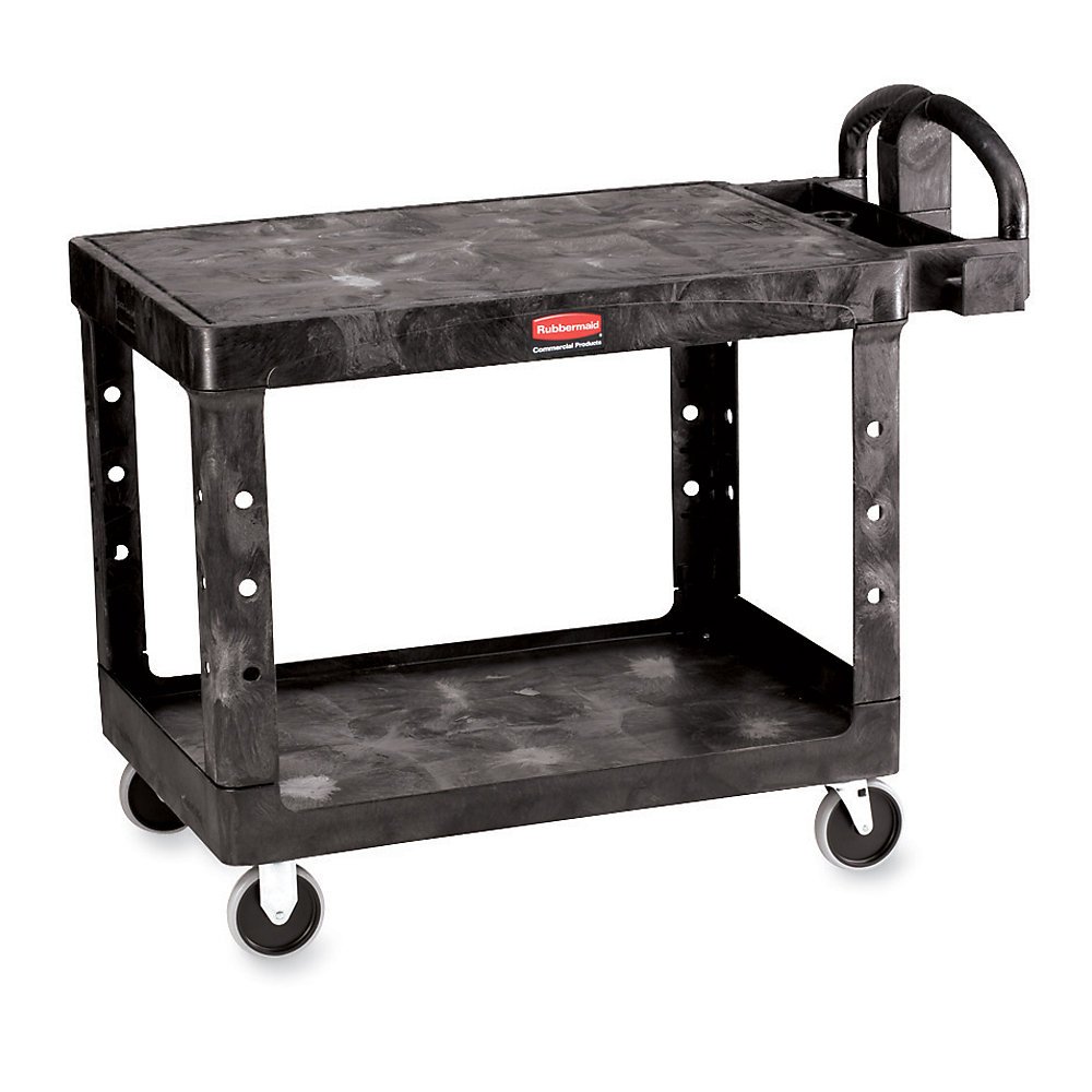 Rubbermaid Commercial Products 2-Shelf Utility/Service Cart, Medium, Flat Shelves, Ergonomic Handle, 500 lbs. Capacity, for Warehouse/Garage/Cleaning/Manufacturing (FG452500BLA)