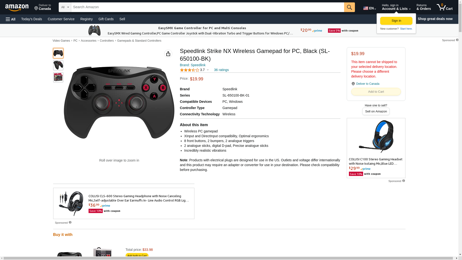 Speedlink Strike NX Wireless Gamepad for PC, Black (SL-650100-BK)