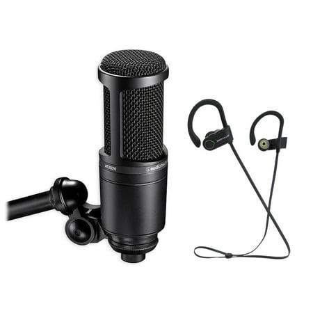 - Package Includes: (1) Audio Technica AT2020 Studio Recording Microphone-Cardioid Condenser Mic. (1)RockvilIe RockSport Running/Sports Bluetooth Earbuds Earphones, IPX7 Waterproof. Features: The price/performance standard in side-address studio condenser microphone technology. Ideal for project/home-studio applications. High SPL handling and wide dynamic range provide unmatched versatility