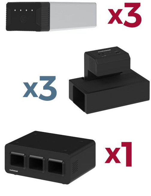 Enjoy the convenient cordless charging of mobile devices. The KwikBoost EdgePower™ <b>KBEP-3B3C3</b> desktop charging station system is a total solution for laptops and mobile devices in workspace and classroom environments. EdgePower eliminates extension cords by putting power right where you need it.</p><p>The KwikBoost EdgePower Light Use Bundle includes 3 Rechargeable Batteries, 3 Clamp-On Desktop Charging Units, plus a 3-Bay Base Charging Station. This system is ideal for small-to-medium-sized rooms where users require frequent access to supplemental power.</p><p>Each EdgePower Clamp-On Desktop Charging Unit features an innovative design that easily attaches to most tables and desktops. Once connected, each unit offers a standard AC outlet, a USB-A charging port, and a USB-C PD charging port. When loaded with freshly recharged EdgePower Rechargeable Batteries, you have enough power to charge typical laptops up to 2 times, average Chromebooks or tablets up to 4 times, and standard smartphones up to 14 times. If desired, each Desktop Charging Unit can also charge a laptop and 2 mobile devices simultaneously.</p>