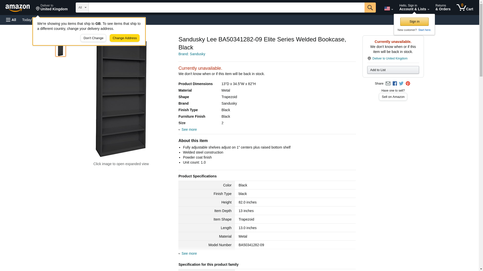 Sandusky Lee BA50341282-09 Elite Series Welded Bookcase, Black