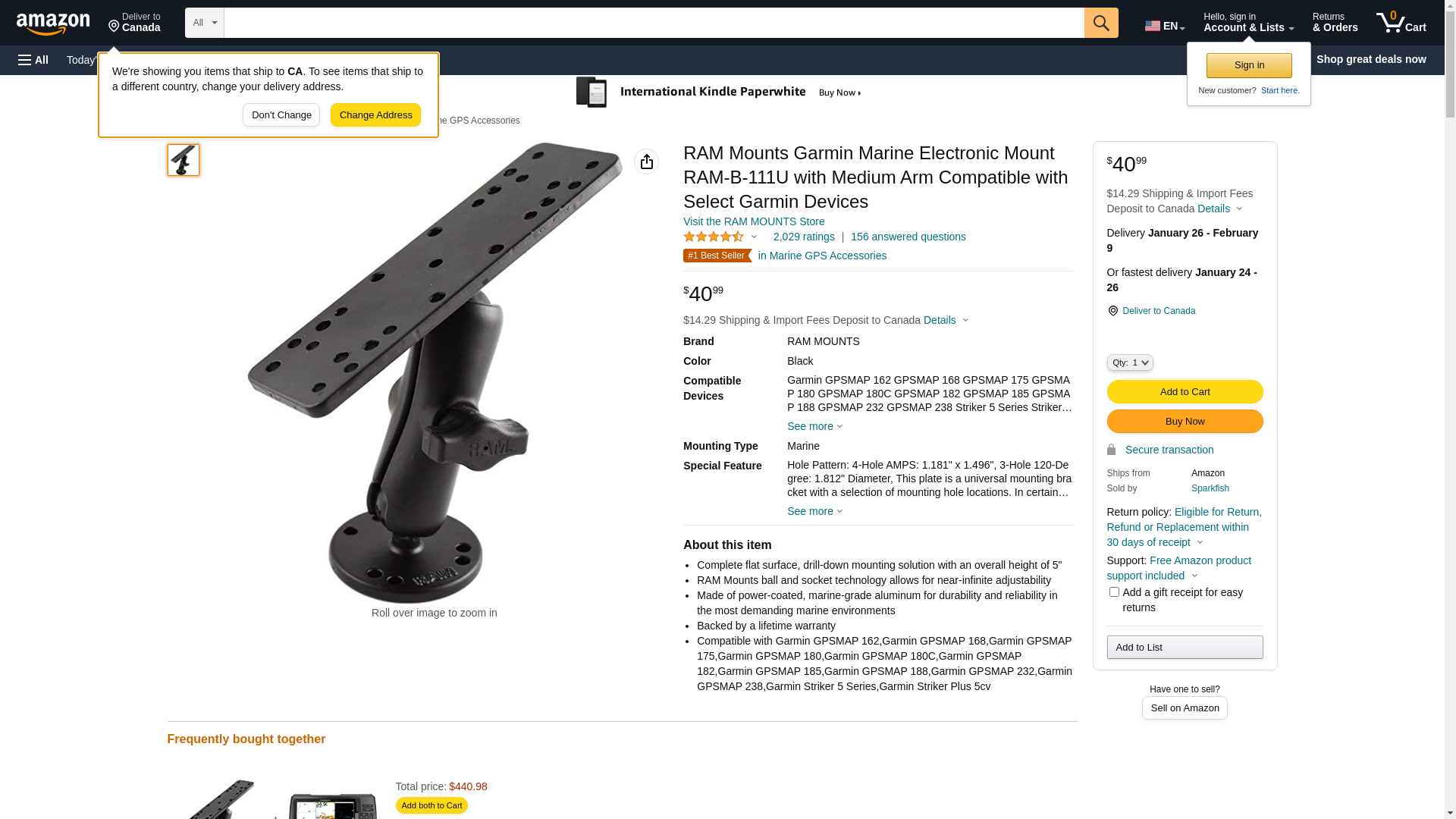 RAM Mounts Garmin Marine Electronic Mount RAM-B-111U with Medium Arm Compatible with Select Garmin Devices
