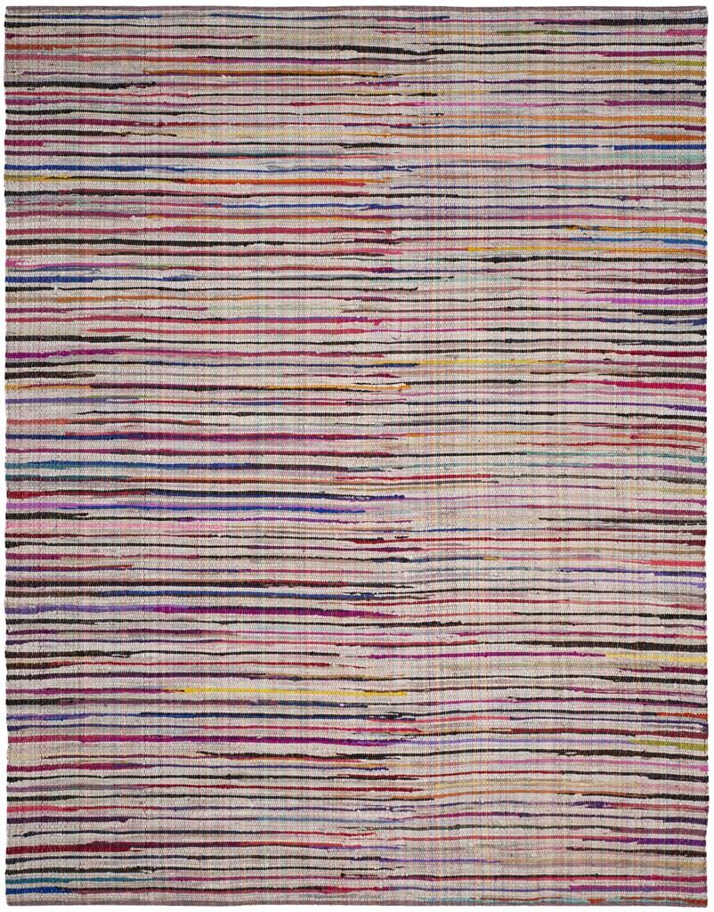 SAFAVIEH Rag Rug Collection Area Rug - 8' x 10', Ivory & Multi, Handmade Boho Stripe Cotton, Ideal for High Traffic Areas in Living Room, Bedroom (RAR240A)