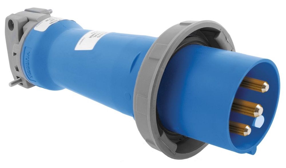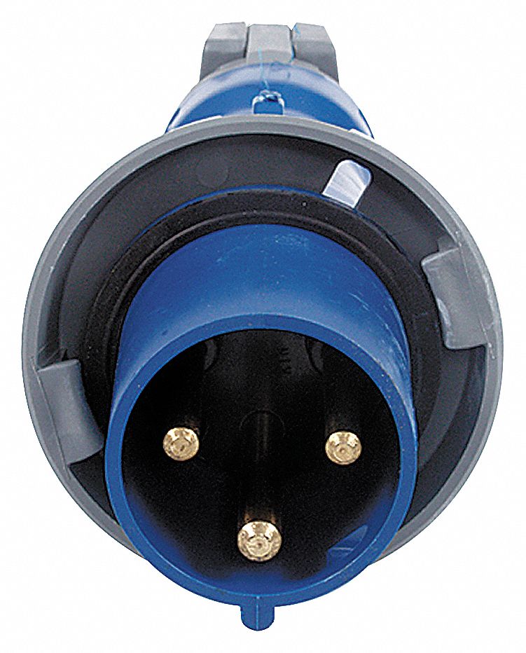 IEC Nonmetallic Watertight Pin and Sleeve DevicesDesigned and manufactured to meet international standards IEC 60309-1 and 60309-2. Feature a nonconductive nylon housing and OSHA-compliant lockout hole in the plug shroud to provide additional safety. The all-nonmetallic housing withstands heavy-duty industrial environments. Devices are color-coded for each specific voltage. Pin configurations are singly rated to prevent accidental mismating.<br /><br /> Item - Plugs and Receptacles: Watertight Pin and Sleeve Plug<br /> Body Material - Pin and Sleeve: Zytel 801 Nylon<br /> Amps - Plugs and Receptacles: 30<br /> Voltage - Plugs and Receptacles: 250VAC<br /> Color - Plugs and Receptacles: Blue<br /> Number of Poles: 2<br /> Number of Wires: 3<br /> Grounding Style: IEC<br /> Phase - Electrical: 1<br /> Item: IEC Pin and Sleeve Plug<br /> HP: 2<br /> Features: Watertight and Abuse Resistant<br /> Standards: UL Listed E146032, UL Listed 1682 and 1686C2, IEC 309-1 and 309-2, CSA Certified file Nbr: LR280C, C22.2 No. 182.1<br />