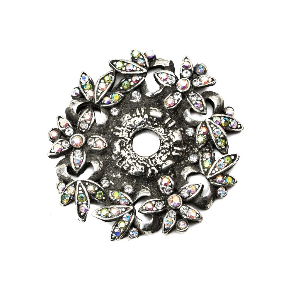 Oak Hollow In the Garden Collection - Rose Round Escutcheon With Swarovski Crystals in Jet with Aquamarine by Carpe Diem Hardware - 2751-2-AQ | Knobs 4 Less