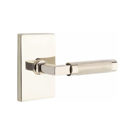 Emtek Select Passage, Modern Rectangular Rosette, L-Square Stem, Knurled Lever, Polished Nickel, RH