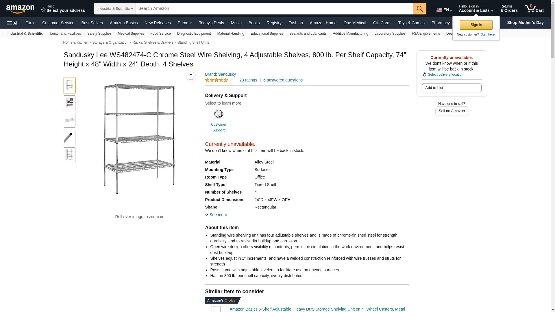 Sandusky Lee's Chrome Wire Shelving is perfect for storing all of your heavy equipment and supplies. This industrial-strength steel shelving unit features four fully adjustable shelves for maximum versatility. Each shelf holds 800 pounds of evenly distributed weight. The open design allows easy accessibility to contents from either side of the unit and permits sprinklers to reach products in case of a fire. An attractive chrome finish adds the final touch to the contemporary design. Adjustable leg levelers keep the shelving even on any floor. This 48"W x 24"D Chrome Wire Shelving Unit from Sandusky Lee is NSF Certified.Key Features Industrial-strength steel shelving Each shelf holds up to 800 pounds Attractive chrome finish Adjustable leg levelersSpecifications Material: Welded steel wire Finish: Chrome Shelves: 4 - adjustable in 1" increments Capacity: 800 pounds per shelf Assembly: Easy assembly Width: 48" Depth: 24" Height: 74" NSF certified Warranty: 1 year