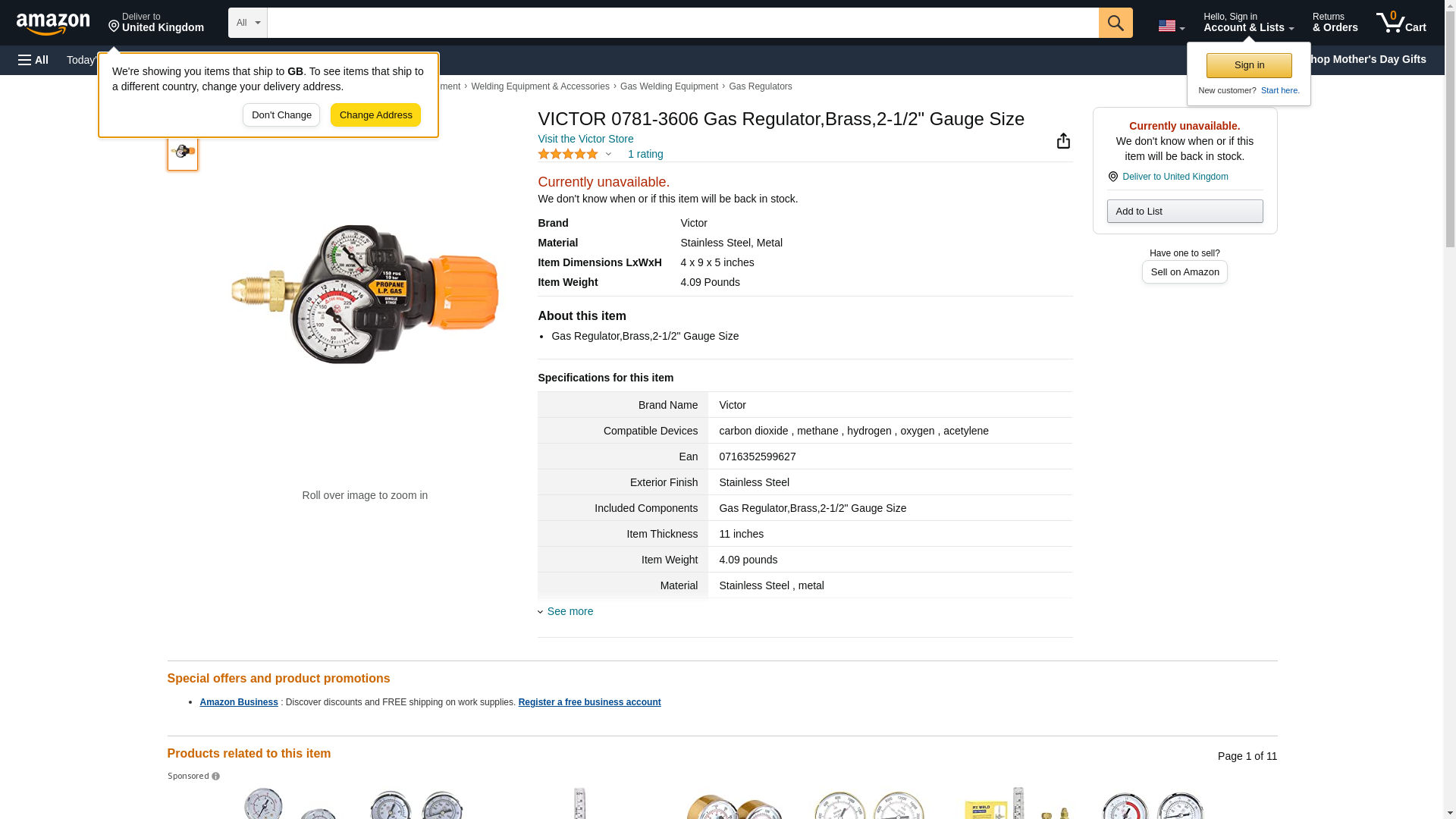 VICTOR 0781-3606 Gas Regulator,Brass,2-1/2" Gauge Size