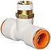 Male Branch Tee, Application Air, Non-Potable Water, Color White, Fitting Side A Connection Type Push-to-Connect, Fitting Side B Connection Type Push-to-Connect, Fitting Side C Connection Type NPT, Includes Pre-Applied Thread Sealant Yes, Fitting Side C Pipe Size 3/8 in, Fitting Side A Tube Outer Diameter 1/2 in, Fitting Side B Tube Outer Diameter 1/2 in, Fitting Material PBT, Maximum Operating Pressure 145 psi, Maximum Operating Temperature 140 Degrees F, Overall Length 43 19/32 mm