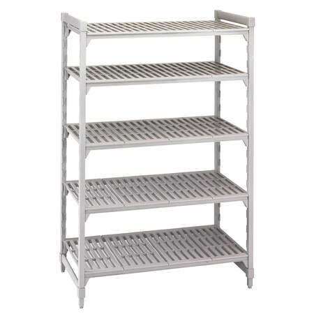 Cambro CPU244264V5480 Camshelving Premium Starter Unit, 5-Tier (5) Vented Polypropylene Shelf Plates, (2) Pre-Assembled Post Kits, (10) Traverses and Molded-In Dovetails, 64" Height, 24" Width, 42" Length, Polypropylene