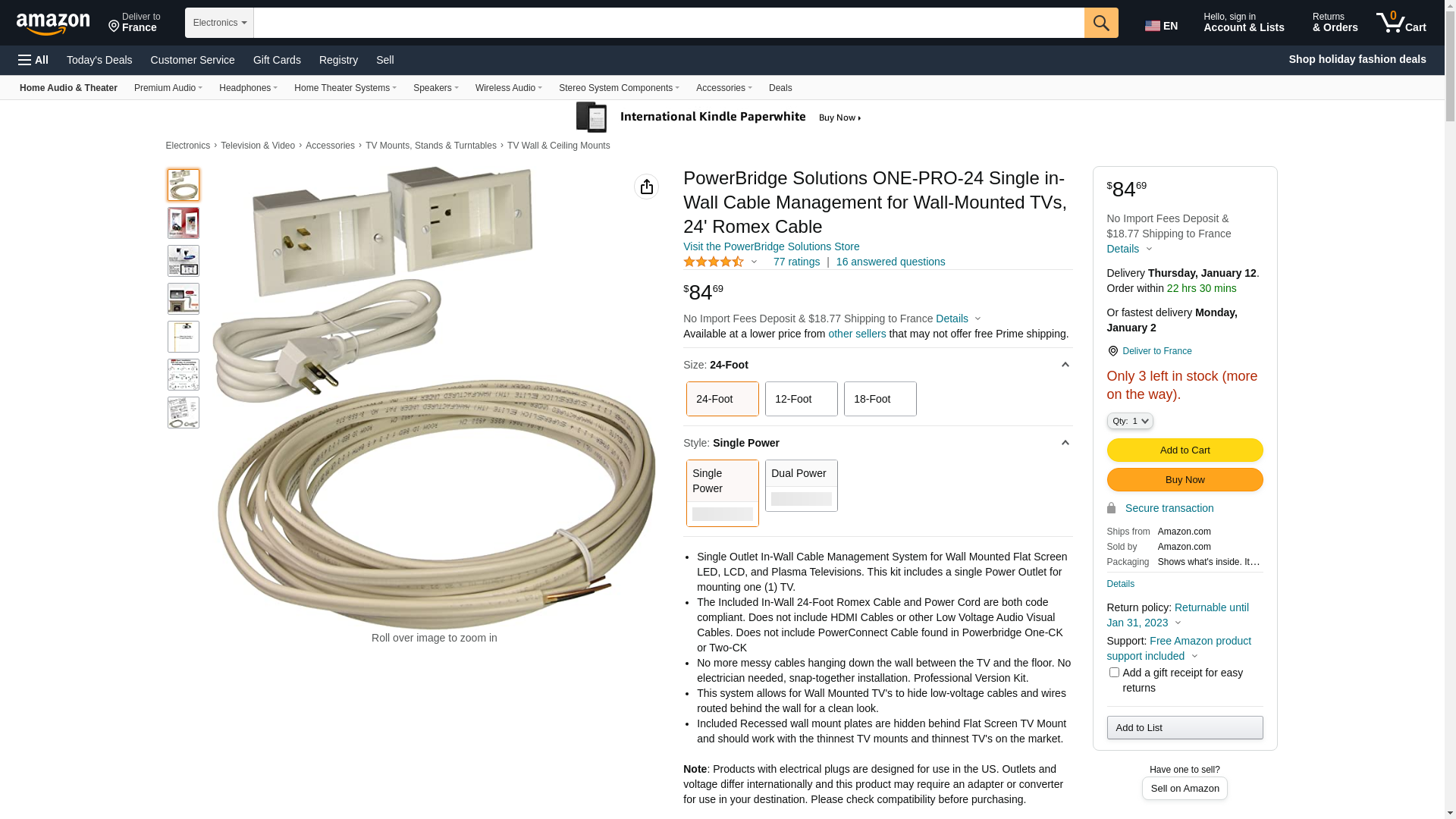 PowerBridge Solutions ONE-PRO-24 Single in-Wall Cable Management for Wall-Mounted TVs, 24' Romex Cable: Maxedbuy.com