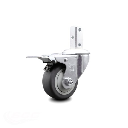 Swivel Square Stem Caster w/3” x 1.25” Gray Thermoplastic Rubber Wheel – 3/4” x 2” Square Stem with (3) 17/64” Diameter Mounting Holes&Total Lock Brakes–210 lbs. Capacity/Caster – Service Caster Brand