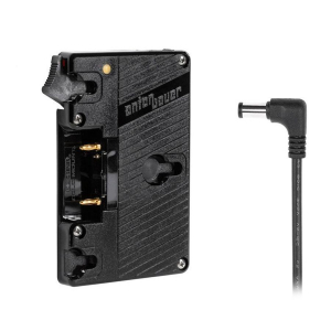 Gold Mount battery plate with a DC connector compatible with PXW-FS7, FS7mkII, FS5, and EVA1 and 2x P-Tap ports to power camera accessories. This model also works with EX3 cameras. Cable exits the right side of the plate allowing neat looping and insertion into the camera. Voltage regulator integrated in the plate provides constant 12V to camera. The 16” length minimizes cable excess while still being able to reach positions further away from the camera as necessary.