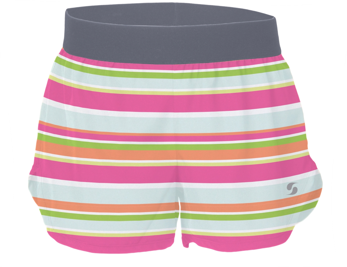 Soffe 1987G9AFXSM Girls 4-Way Stretch Run Shorts, Sarah Stripe & Gunmetal - Extra Small
