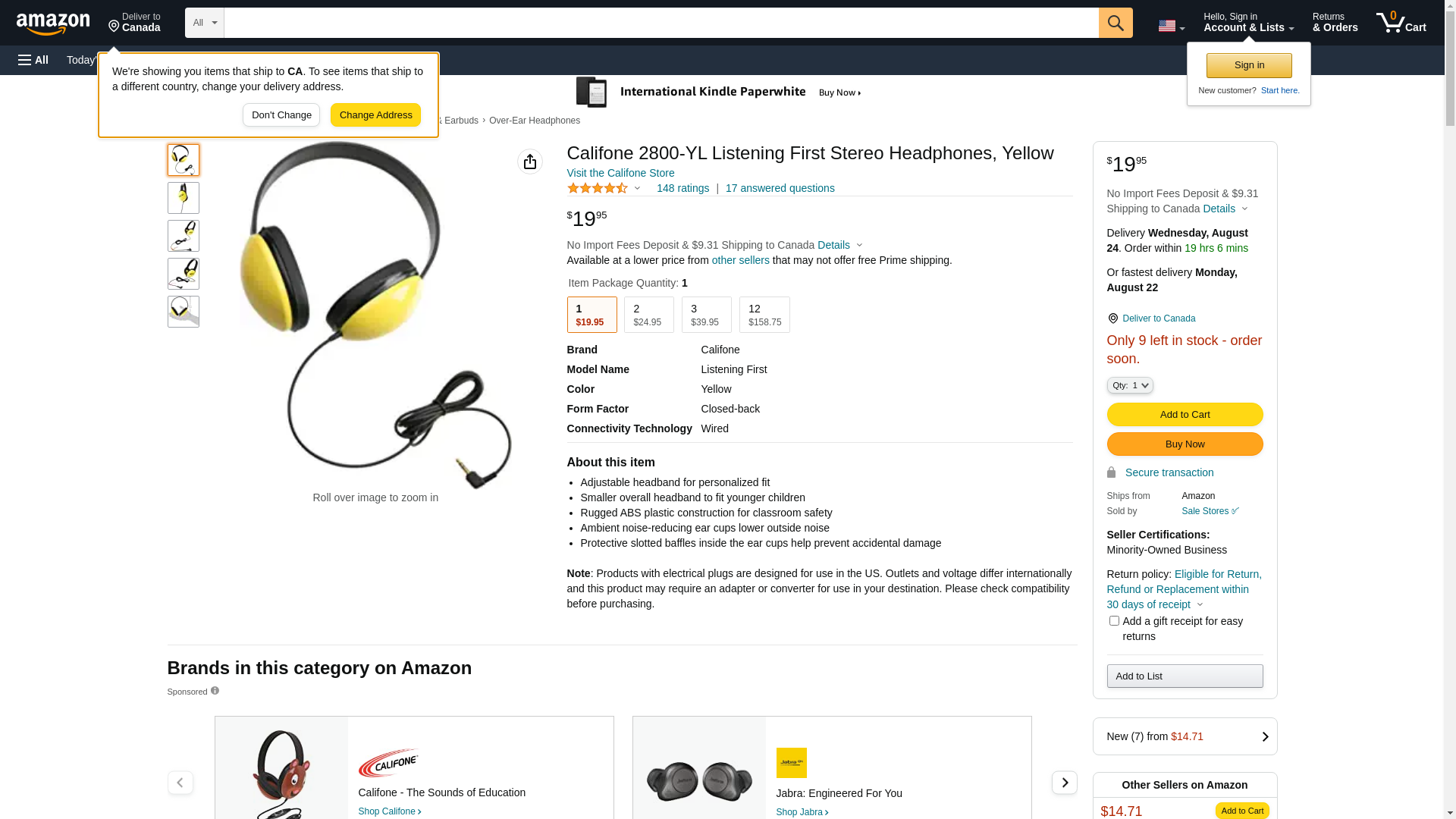 Listening First Stereo Headphones, Yellow - CAF2800YL | Califone International | Headphones