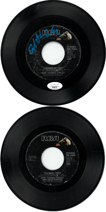 Athlon Sports CTBL-028538 Earl Thomas Conley Signed 1986 Changes Of Love-Too Many Times 7 45 RPM Vinyl Record - JSA No.K