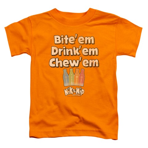 Trevco Dubble Bubble-Bite Drink Chew - Short Sleeve Toddler Tee - Orange, Small 2T