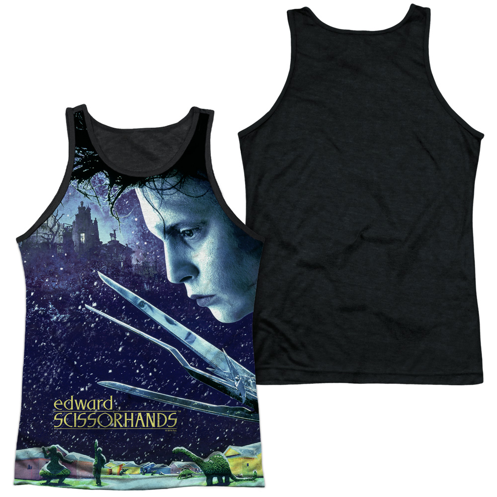 Trevco TCF145-TKBB-3 Edward Scissorhands & Home Poster Adult Polyster Tank Top with Black Back, White - Large