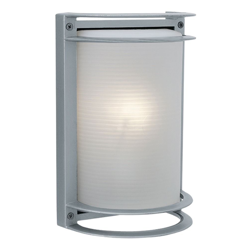 - This wet location bulkhead has stylish half moon rings at the top and bottom of the frame, adorning ribbed frosted glass.