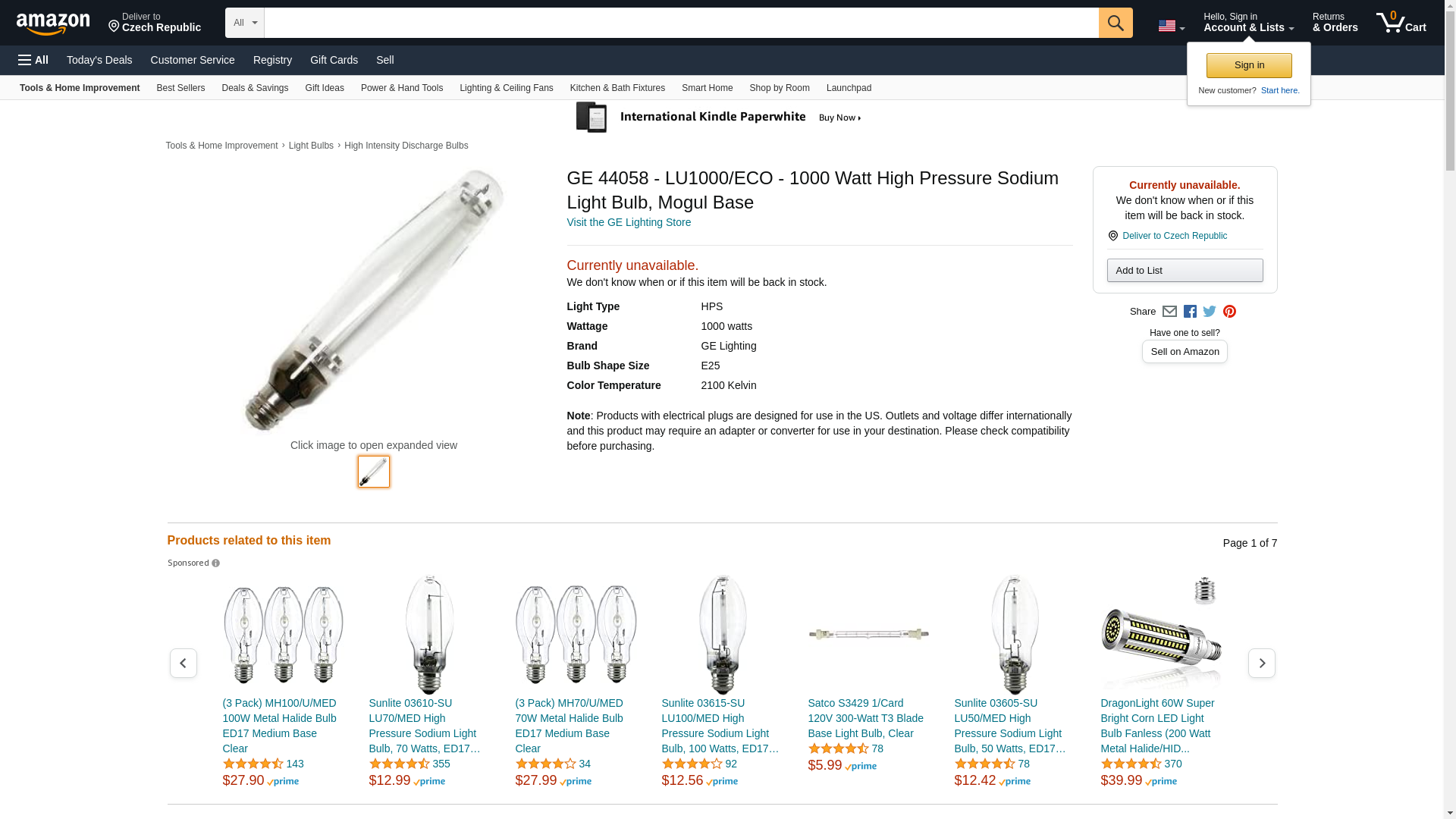 GE LIGHTING 1000W, E25 High Pressure Sodium HID Light Bulb
