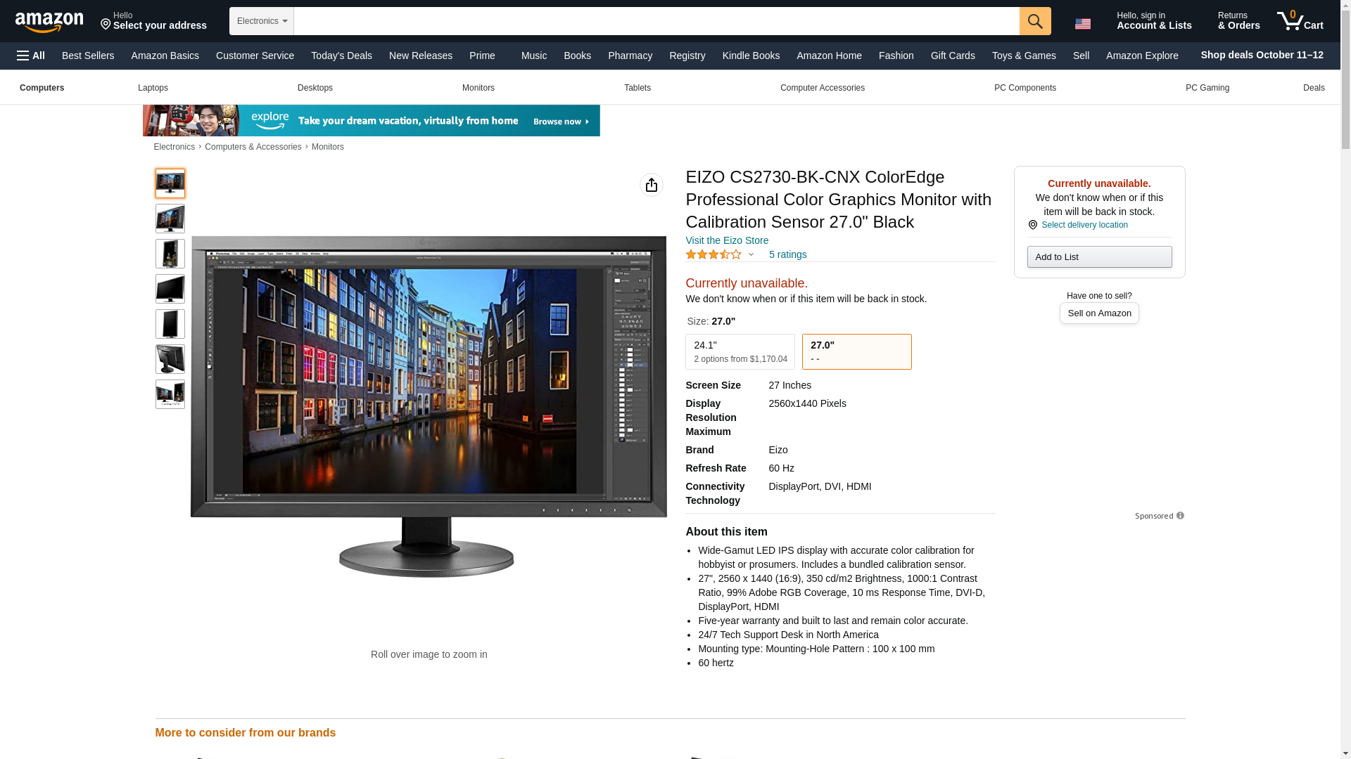 EIZO CS2730-BK-CNX ColorEdge Professional Color Graphics Monitor with Calibration Sensor 27.0" Black