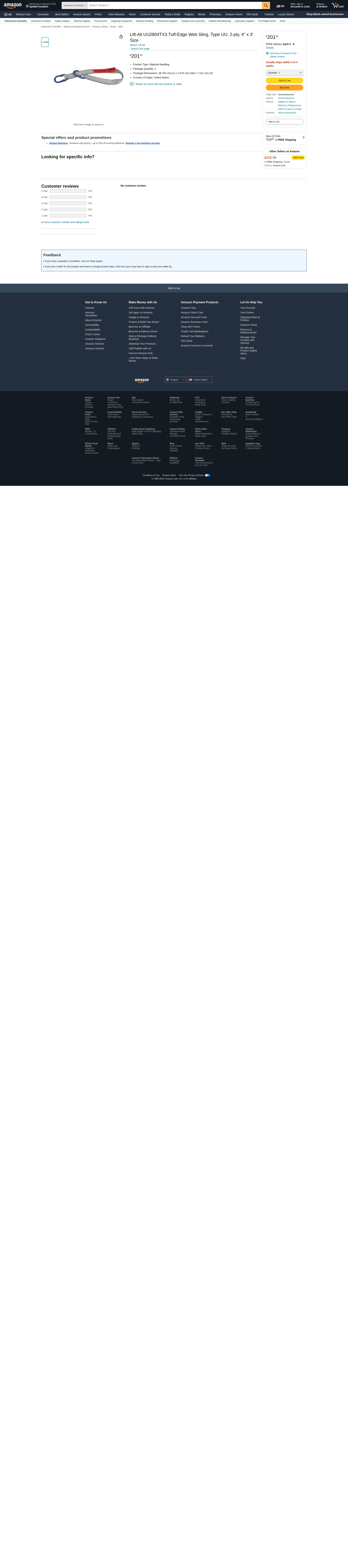 Lift-All UU2804TX3 Tuff-Edge Web Sling, Type UU, 2-ply, 4" x 3' Size