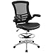Modway Attainment Vinyl Drafting Chair - Drafting Stool With Flip-Up Arm in Black