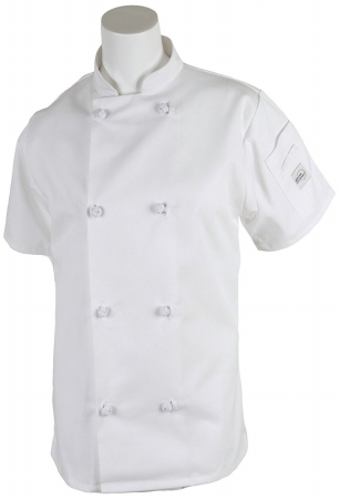 Mercer Culinary M60024WHL Millennia Women's Short Sleeve Cook Jacket with Cloth Knot Buttons, Large, White