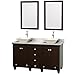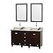 Wyndham Collection Acclaim 60 inch Double Bathroom Vanity in Espresso, White Carrera Marble Countertop, Pyra Bone Sinks, and 24 inch Mirrors