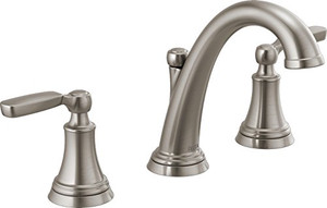 Delta Faucet Woodhurst Widespread Bathroom Faucet Brushed Nickel, Bathroom Faucet 3 Hole, Bathroom Sink Faucet, Metal Drain Assembly, Stainless 3532LF-SS