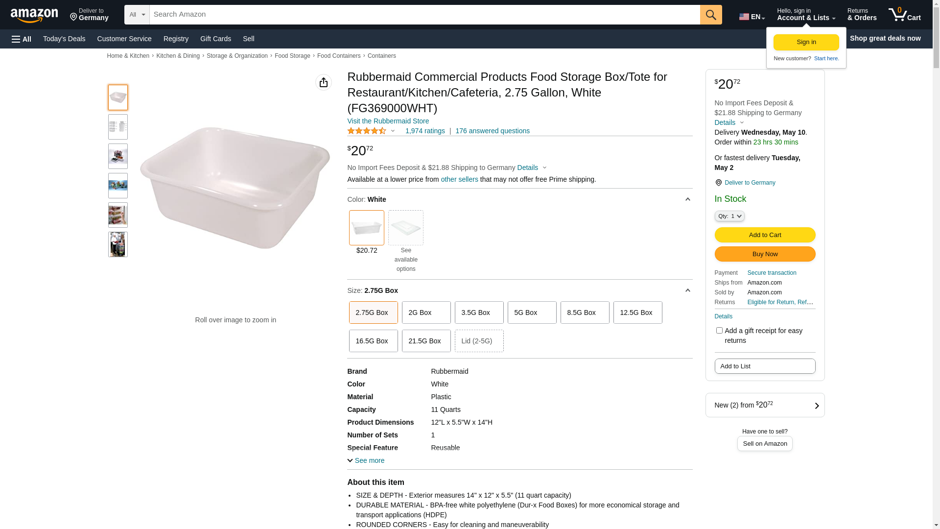 Rubbermaid Commercial Products Food Storage Box/Tote for Restaurant/Kitchen/Cafeteria, 2.75 Gallon, White (FG369000WHT)