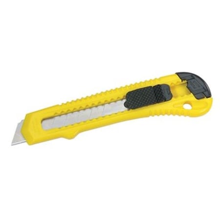 Retractable Pocket Cutter, 6 in, Snap-Off, Carbon Steel, YellowStanley Retractable Pocket Cutters WARNING: Some dust created by power sanding, sawing, grinding, drilling, and other construction activities contains chemicals known to the State of California to cause cancer, birth defects or other reproductive harm. Some examples of these chemicals are: lead from lead- based paints, crystalline silica from bricks and cement and other masonry products, and arsenic and chromium from chemically-treated lumber. Your risk from these exposures varies, depending on how often you do this type of work. To reduce your exposure to these chemicals: work in a well ventilated area, and work with approved safety equipment, such as those dust masks that are specially designed to filter out microscopic particles. Color: Yellow; Black Blade Material: Carbon Steel Blade Length [Nom]: 4-1/4 in Height [Nom]: 0.7 in Includes: Quick-Point blade Type: Utility Width [Nom]: 1-1/2 in Body Material: Plastic Blade Style: Snap-Off Handle Length [Nom]: 6 in Handle Type: Ergonomic Packing Type: Plastic Bag Overall Length [Nom]: 6 in Handle Material: Plastic Blade Width [Nom]: 18 mm Blade Tip Shape: Pointed Handle Color: Yellow; Black Wt.: 0.1 lb