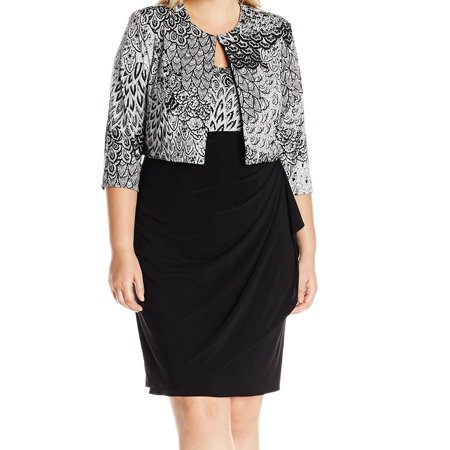 MSK NEW Black White Womens Size 14W Plus Sequin Printed Sheath Dress Set