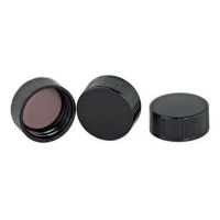 Solid Cap, 28-400 G.P.I. Thread, PTFE Liner. Cap for use with CG-190 G.P.I. screw threads. Part numbers CG-191-01 through CG-191-12 are made of black plastic with a choice of white rubber or PTFE liner. Part number CG-191-14 is made of blue polypropylene with a detachable PTFE liner. NOTE: CAPS SOLD IN PACKAGES ONLY.